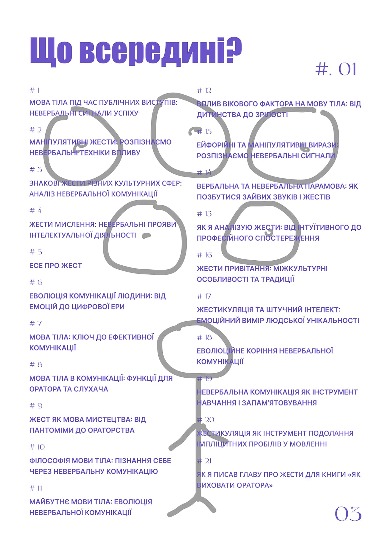 Цей випуск повністю присвячений темі мови тіла – загадковій і потужній системі невербальних сигналів, яка відіграє ключову роль у спілкуванні та публічних виступах. На сторінках журналу ви знайдете ґрунтовні та захопливі статті, що розкривають різні аспекти невербальної комунікації – від її еволюційного коріння та культурних особливостей до практичних технік і вправ для розвитку власної ораторської майстерності.